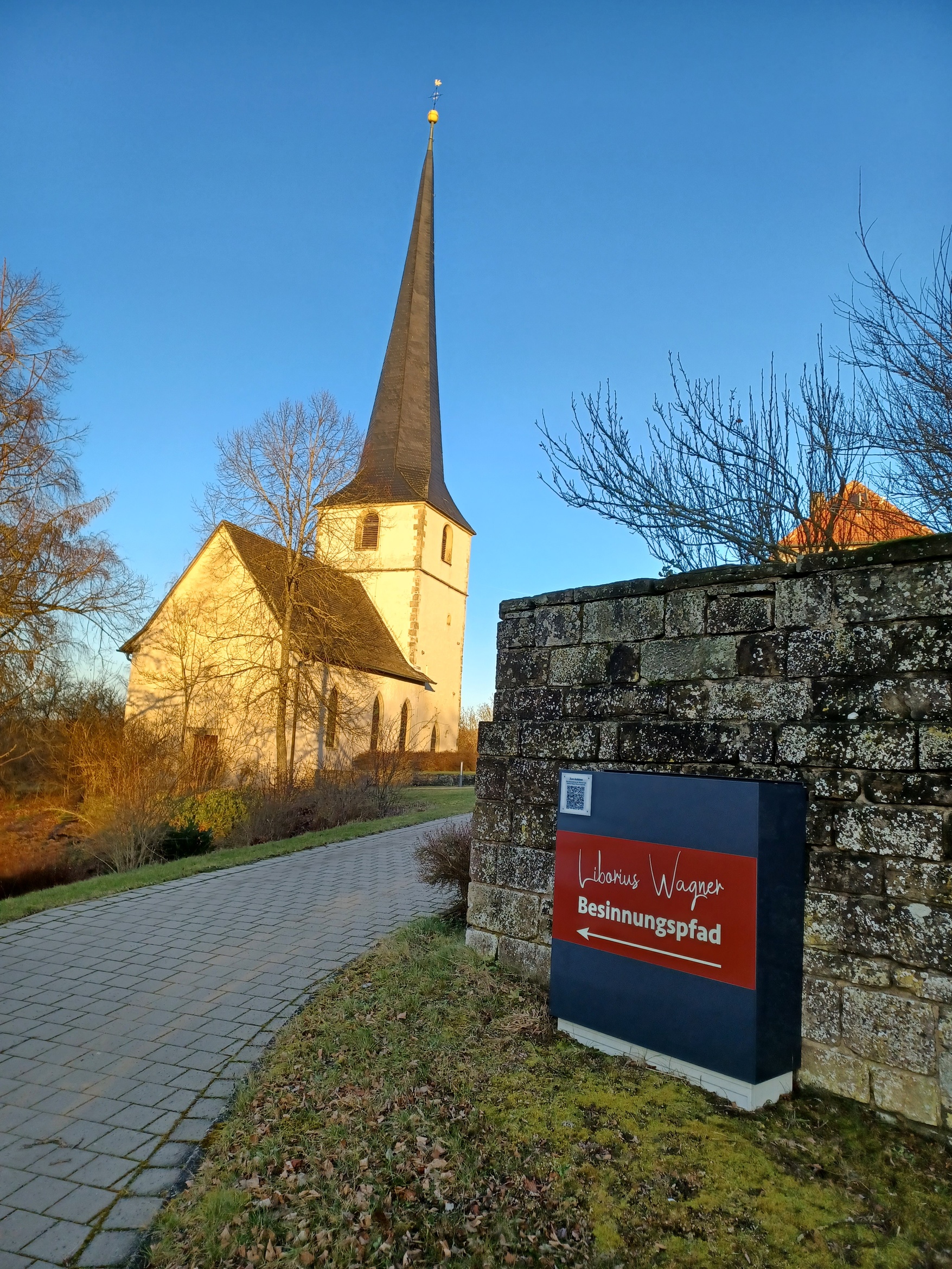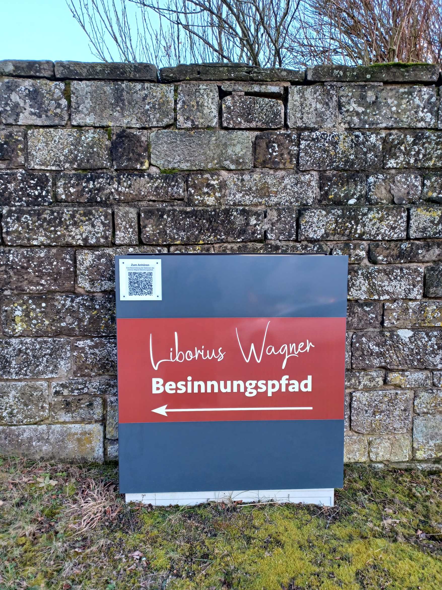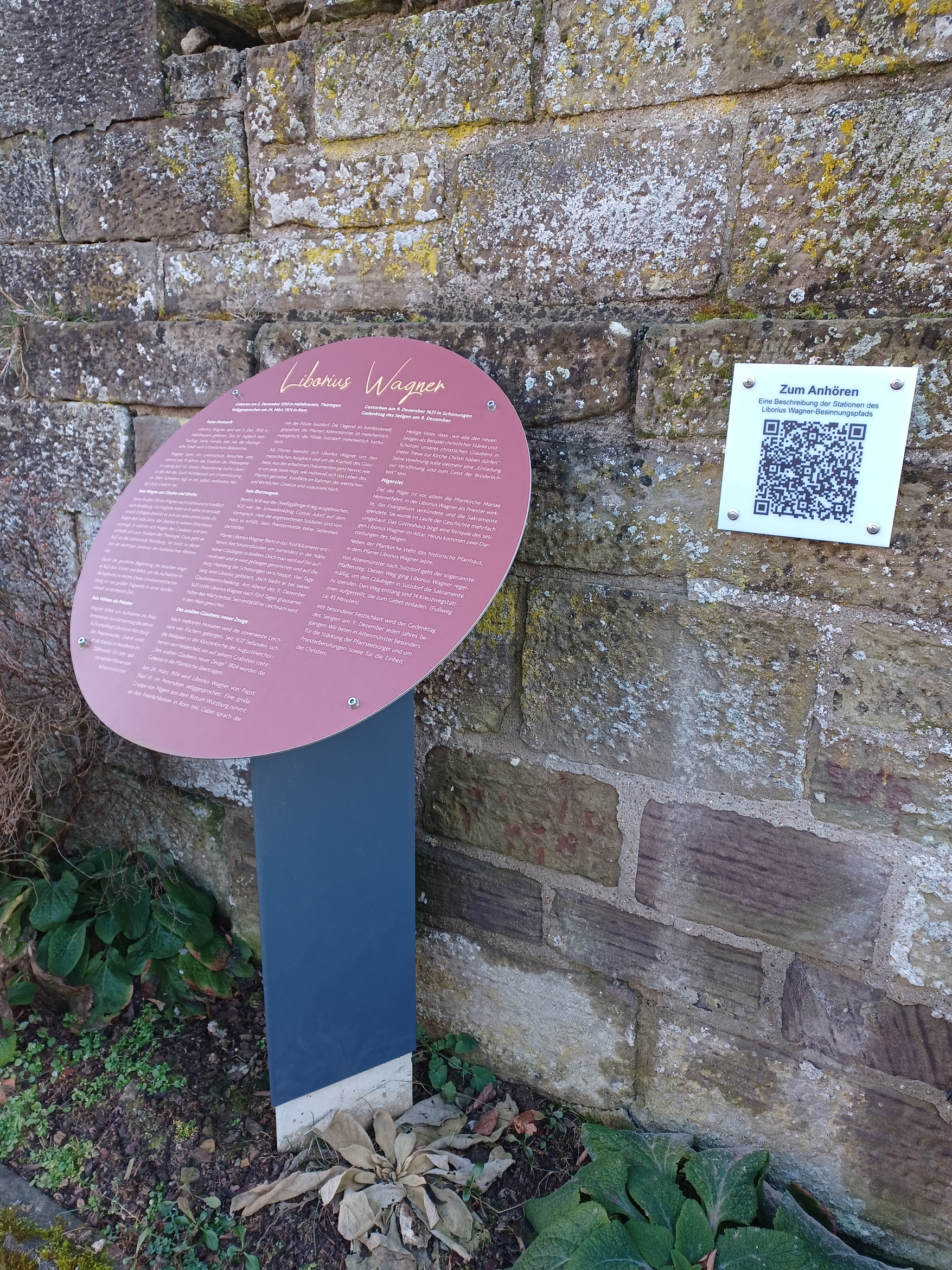 Im Jubiläumsjahr der Seligsprechung (1974-2024) fand auf dem Weg um die Kirche ein Besinnungstag für liturgische Dienste statt. Von diesem ging der Impuls aus, zu den einzelnen Stationen Audio-Beiträge zum Anhören zugänglich zu machen. Seit Januar 2025 befinden sich nun am Beginn des Liborius-Wagner-Besinnungspfads in Altenmünster zwei kleine Täfelchen mit einem QR-Code. Die Kirchenverwaltung um Kirchenpfleger Michael Münch hat sie in der Nähe der ersten Info-Stele befestigt. Wer den Code einscannt, gelangt auf die Homepage des pastoralen Raums Schweinfurter Oberland – Seliger Liborius Wagner. Pfarrer Dr. Eugen Daigeler hat Texte zu den Stationen verfasst und aufgenommen. Sie können hier nachgehört werden.