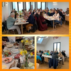 Die feierliche Gestaltung durch den Chor Laetitia verlieh dem Gottesdienst eine besondere Tiefe und ließ die große Osterfreude spürbar werden. Diese Freude und Verbundenheit setzten sich im Anschluss beim gemeinsamen Osterfrühstück im Bürgerhaus fort, wo Begegnung und Austausch in herzlicher Atmosphäre möglich waren.