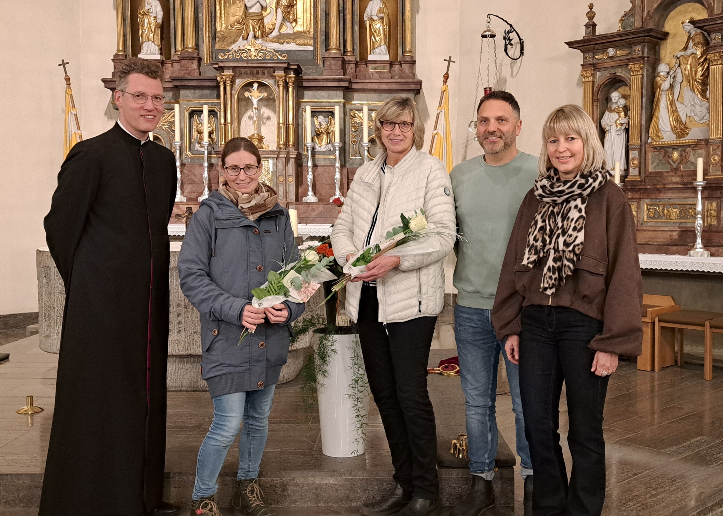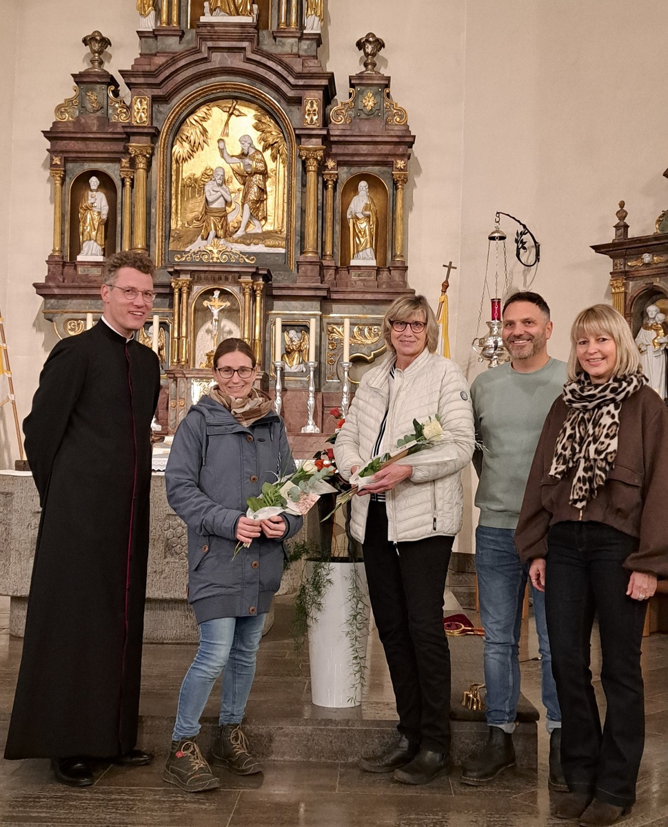 Eine ansprechende Atmosphäre im Gotteshaus ist etwas Wertvolles - für Beter und für alle, die die Kirche besuchen. Dafür ist Pflege und Sauberkeit wichtig, aber auch schöne und passende Blumen sind ein wichtiger Beitrag. Dafür dankten Kirchenpfleger Dawid Weisensee, Claudia König vom Pfarrgemeinderatsvorstand und Pfarrer Dr. Eugen Daigeler herzlich zwei Mitgliedern aus dem Blumenschmückerteam.