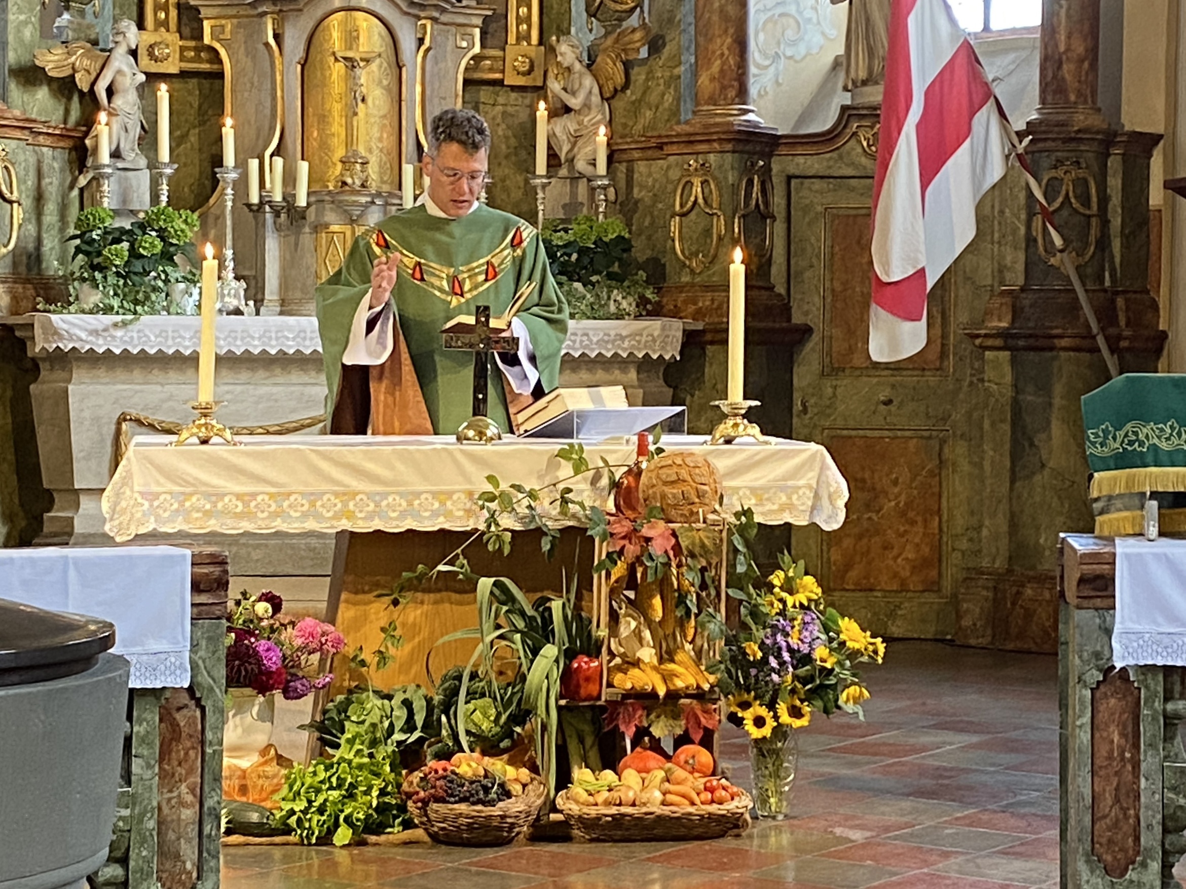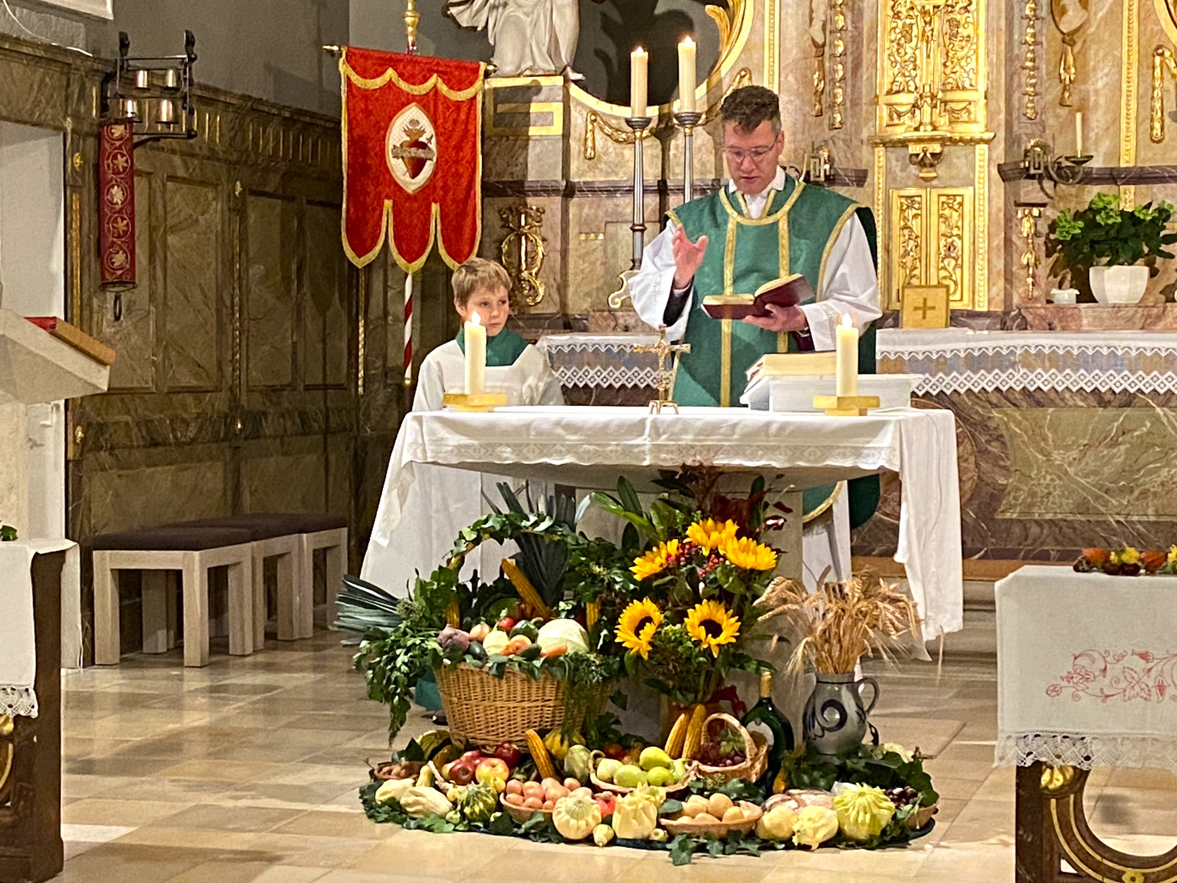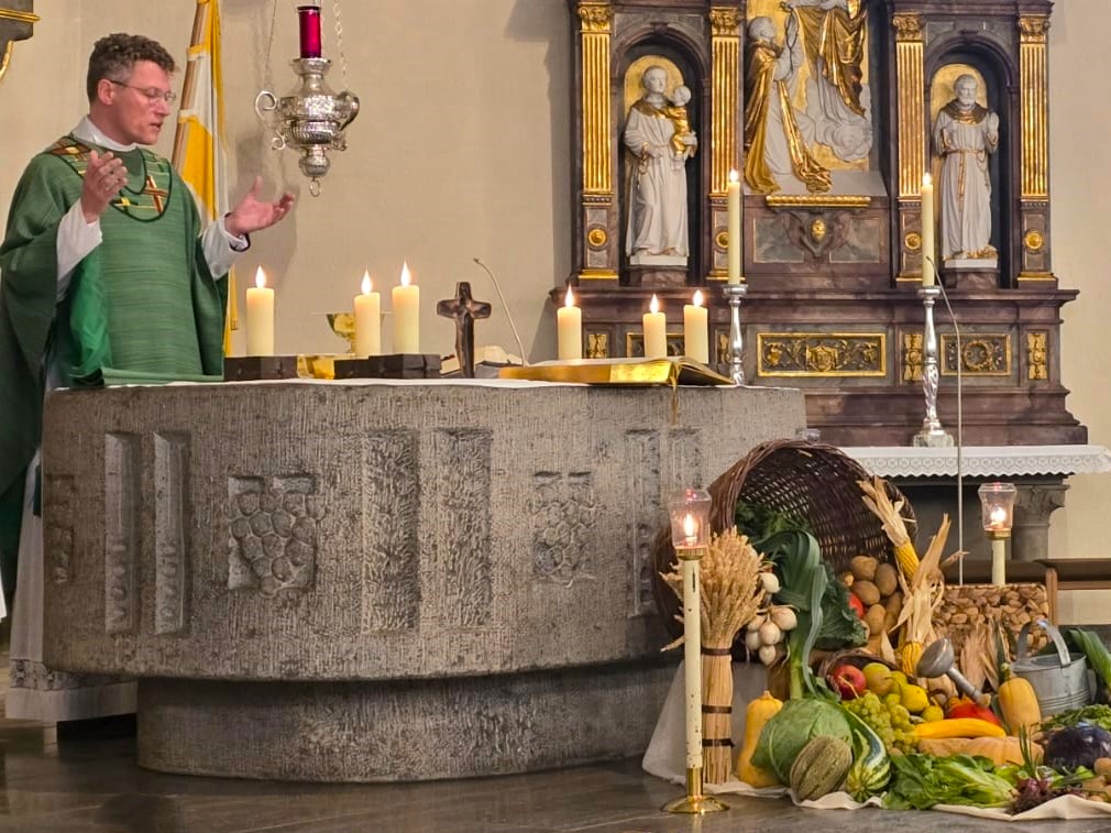 Prächtige Erntealtäre waren in unseren Kirchen von Ehrenamtlichen aufgebaut worden. Früchte, Gemüse und Blumen zeugen von der Schönheit der Schöpfung und dem Reichtum der Gaben Gottes. Erst in der Haltung der Dankbarkeit kann man sie wirklich genießen, indem man sich daran freut, indem man erkennt, dass nichts selbstverständlich ist, und indem man die Spuren von Gottes Güte darin sieht.