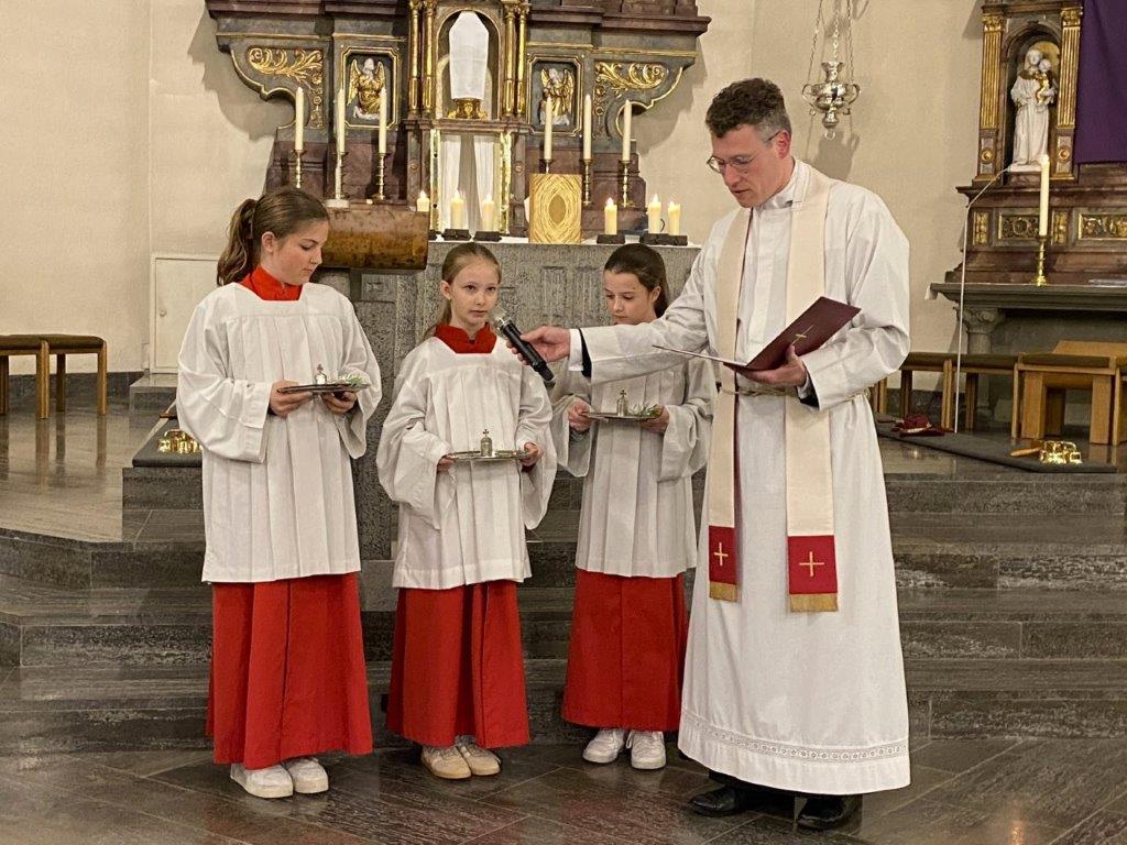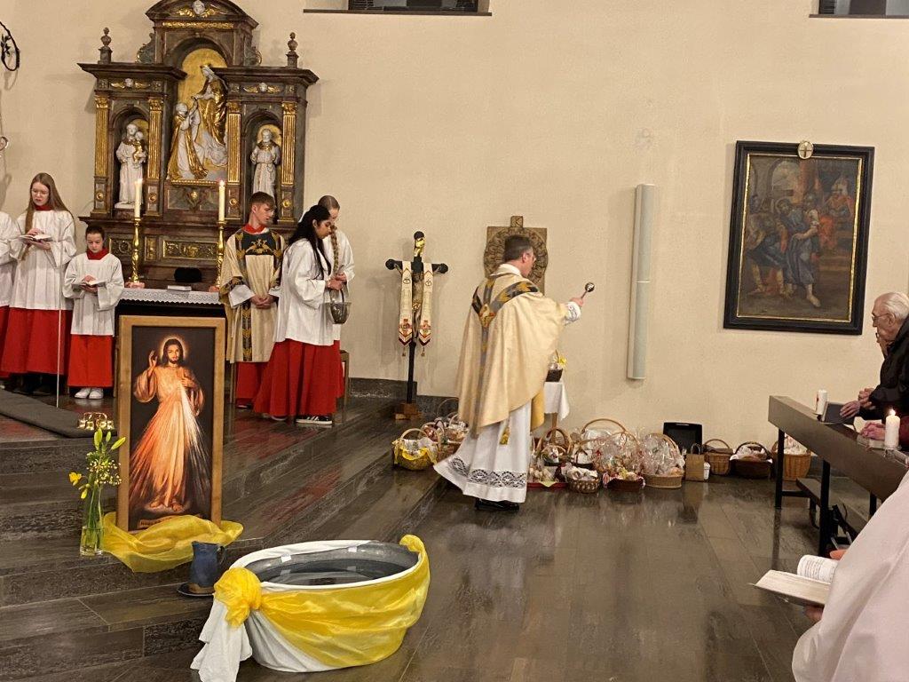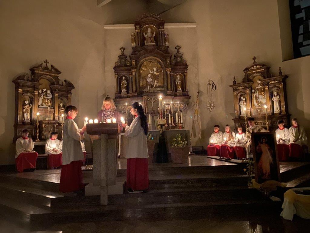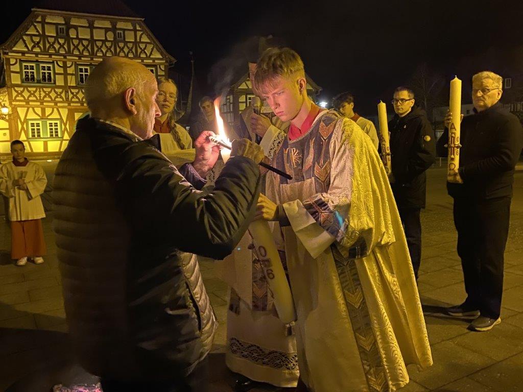 Mit Liebe und oft großem Aufwand schmückten Ehrenamtliche am Karsamstag unsere Gotteshäuser für das hohe Osterfest. Nach Einbruch der Dunkelheit versammelte man sich zur Feier der Auferstehung des Herrn. In Üchtelhausen, Stadtlauringen und Löffelsterz wurde die Ostervigil von Chören musikalisch bereichert. Nach 40 Tagen erklang wieder das Halleluja. Jesus lebt! Eifrig hatten auch die Ministranten für diese besonderen Gottesdienste geprobt. In der mit zahlreichen Gläubigen gefüllten Stadtlauringer Kirche sprach Pfarrer darüber, dass es sich lohne, in dieser Nacht zu wachen. Denn es ist unser Dienst, es fördert unsere Wachsamkeit und wir haben allen Grund zu feiern, dass Christus auferstanden ist. Die Osterfreude teilten die Teilnehmer auch bei den anschließenden Agapefeiern bzw. Frühstücken.