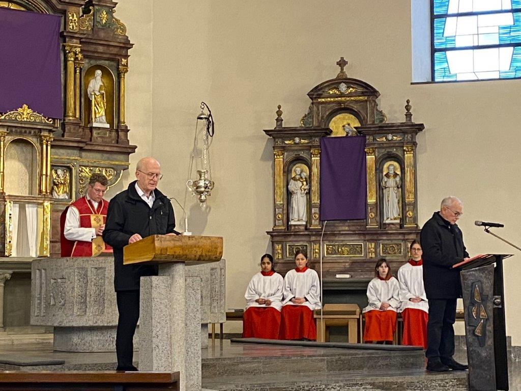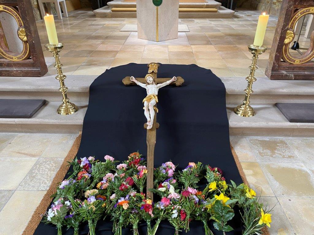 Die Leidensgeschichte nach Johannes stand im Mittelpunkt der Karfreitags-Liturgien in unseren Kirchen. Die Mitfeiernden zeigten ihre Dankbarkeit durch die Kreuzverehrung. In einer kurzen Meditation lenkte Pfarrer Eugen Daigeler den Blick auf Maria, die unter dem Kreuz stand. "Auch wenn uns die Worte manchmal fehlen, so können wir doch einander beistehen. Wenn wir nicht allein sind, ist alles verändert." Die Ernsthaftigkeit des Karfreitagsgottesdienstes traf vielerorts die Herzen der Gläubigen.