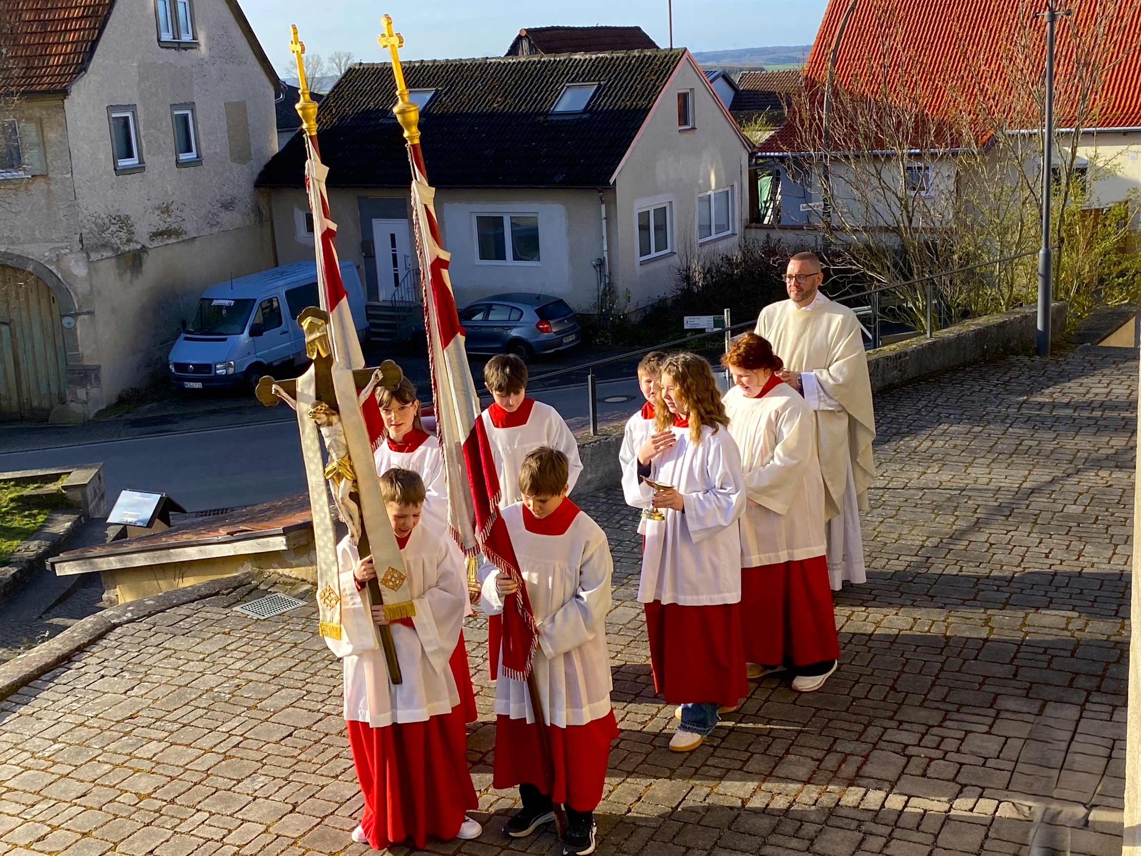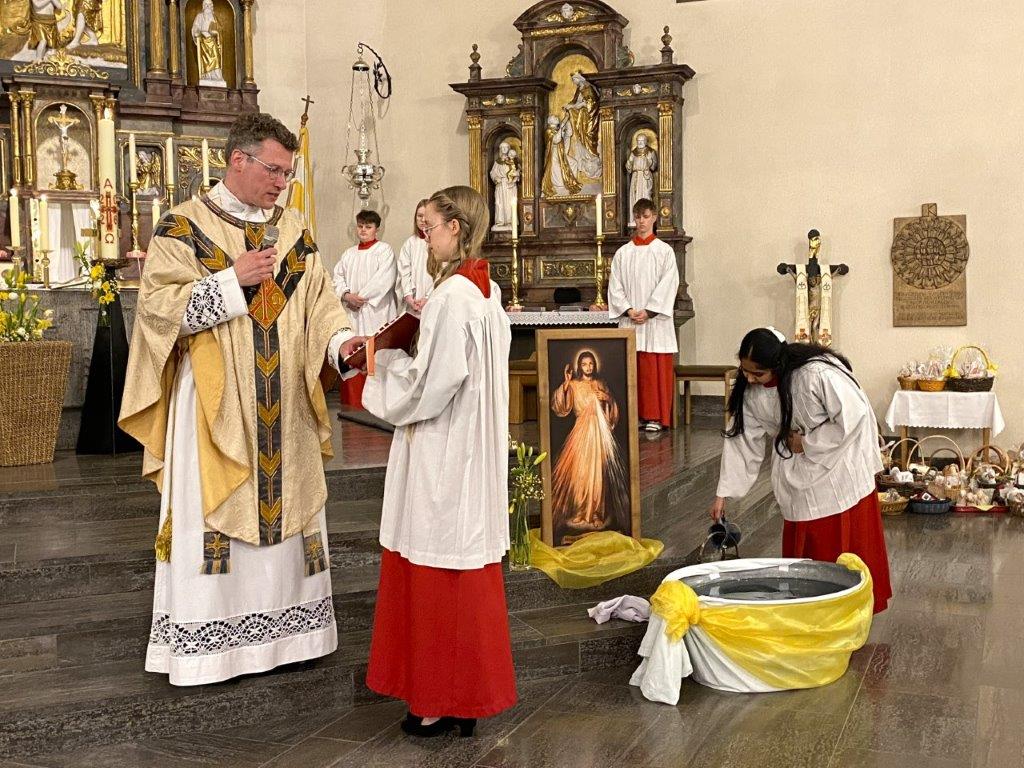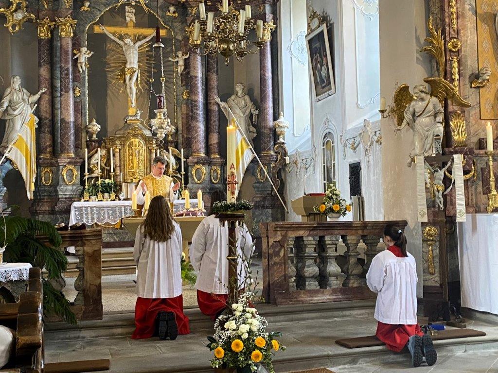 Das umfangreiche, liturgische Programm im Pastoralen Raum beinhaltete die Messfeiern der Oberland-Pfarrer sowie der Aushilfsgeistlichen Msgr. Kirchner und Pfr. Hanel, die Wortgottesfeiern der Diakone und ehrenamtlicher Gottesdienstbeauftragter sowie weitere Gebetsinitiativen getaufter und gefirmter Christen. Die beliebten, fränkischen Osterlieder erklangen dank des treuen Dienstes unserer Organisten in den Messfeiern am Ostersonntag und am Ostermontag. Die Kirche setzt über diese Tage die Zuversicht des Introitusverses: "Ich bin erstanden und bin immer bei dir!" Dieser Glaube soll gestärkt werden durch die Mitfeier unserer gemeinsamen Gottesdienste.
