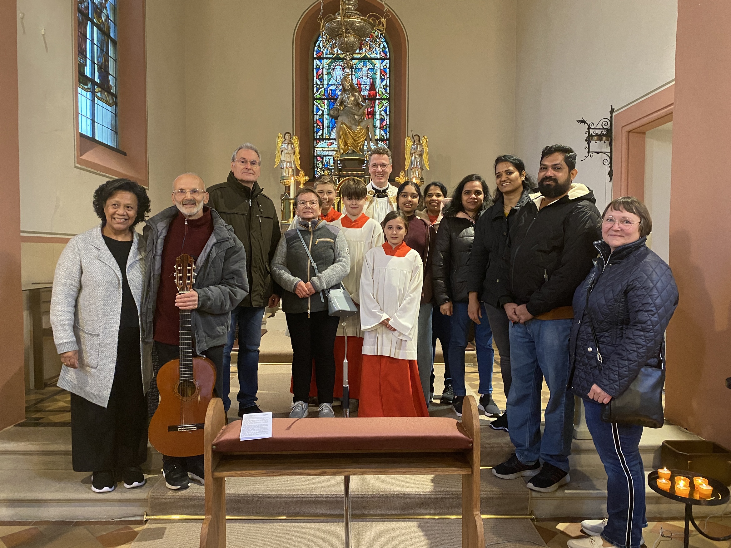 Gut gefüllt war die Kapelle bei der dritten Andacht, dem internationalen Rosenkranz. Elfriede Memmel spielte die Orgel, es erklangen aber auch spanische und indische Lieder. In fünf Sprachen wurden das Vater unser und das Gegrüßet seist du Maria gebetet. Dabei nahm man die Freudenreichen Geheimnisse, bei denen es um die Menschwerdung und Geburt Jesu geht, in den Blick. Pfarrer Dr. Daigeler hatte dazu Betrachtungstexte zusammengestellt.
