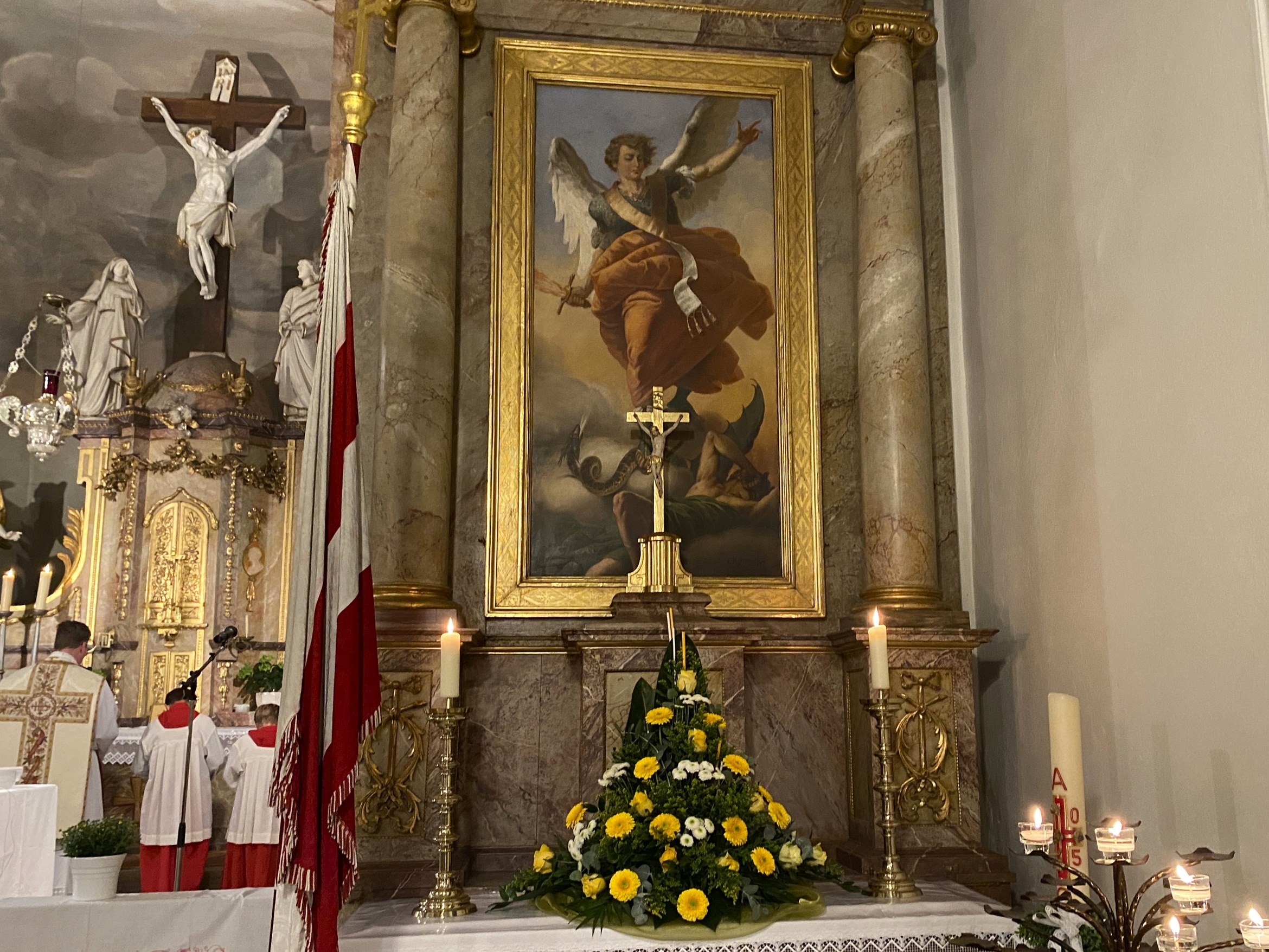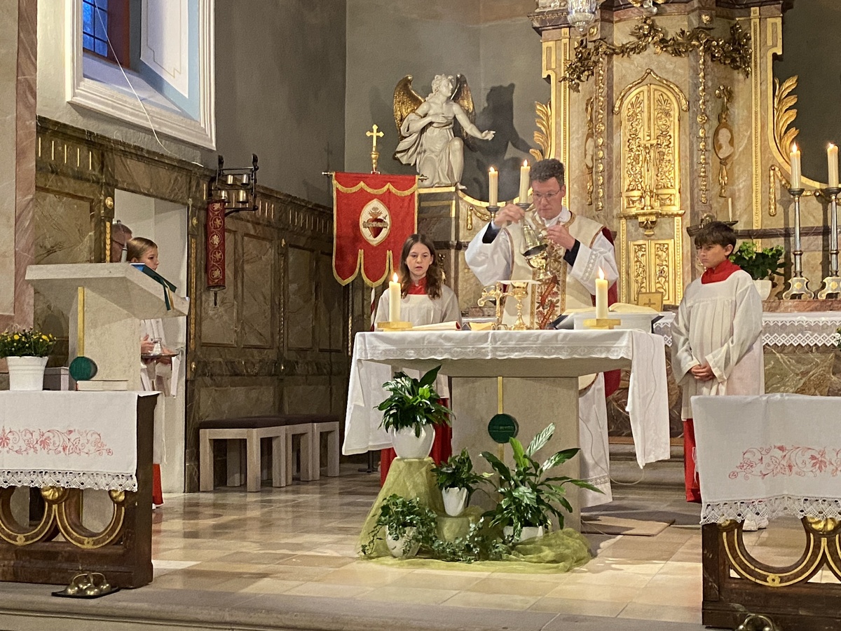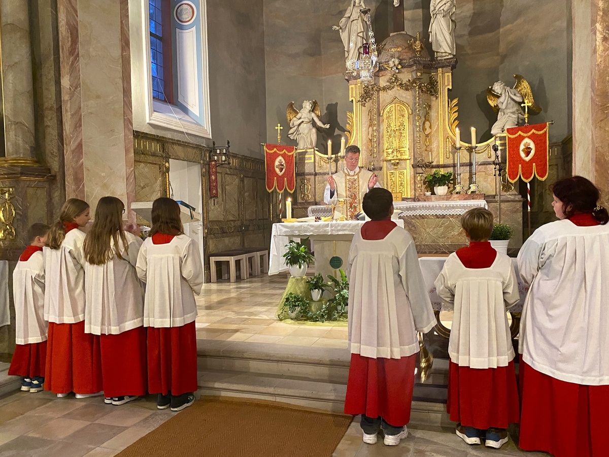 Eine festliche Messe feierten zahlreiche Gläubige am Abend des 29. September in Birnfeld mit. Das Fest des heiligen Erzengels Michael ist das Patrozinium der Pfarrkirche. Die Ministranten zogen mit Fahnen und Weihrauch unter festlichen Orgelklängen in das Gotteshaus ein. Pfarrer Dr. Eugen Daigeler zelebrierte das Hochamt und sprach in seiner Predigt über die Engel als Boten Gottes, die uns an seine Gegenwart und Weisung erinnern.