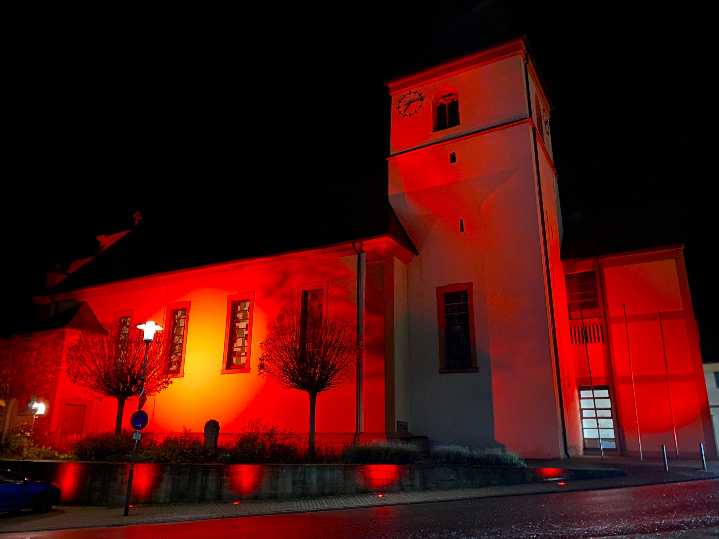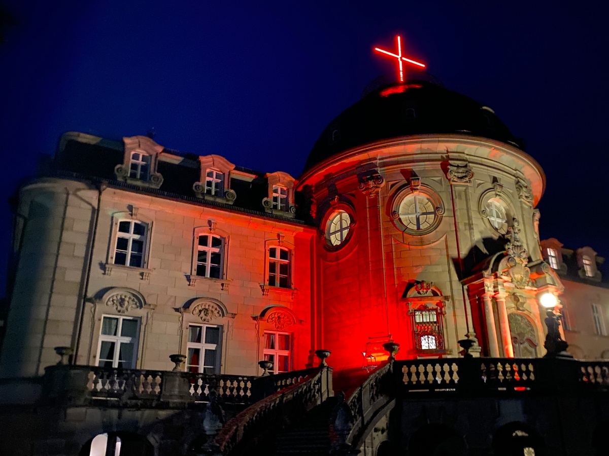 Mitte November findet weltweit der sogenannte "Red Wednesday" statt. Die Aktion wird angeregt vom internationalen Hilfwerks "Kirche in Not", das Christen in armen Ländern und in Situationen von Benachteiligung und Verfolgung unterstützen möchte. Als äußeres Zeichen dieses "Roten Mittwochs" werden öffentliche Gebäude und Kirchen mit rotem Licht angestrahlt. So war es auch am 19. November im Markt Stadtlauringen. Das Schloss Craheim und die Kirche St. Johannes Stadtlauringen leuchteten rot zum sichtbaren Zeichen der Solidarität mit verfolgten Christen weltweit.
