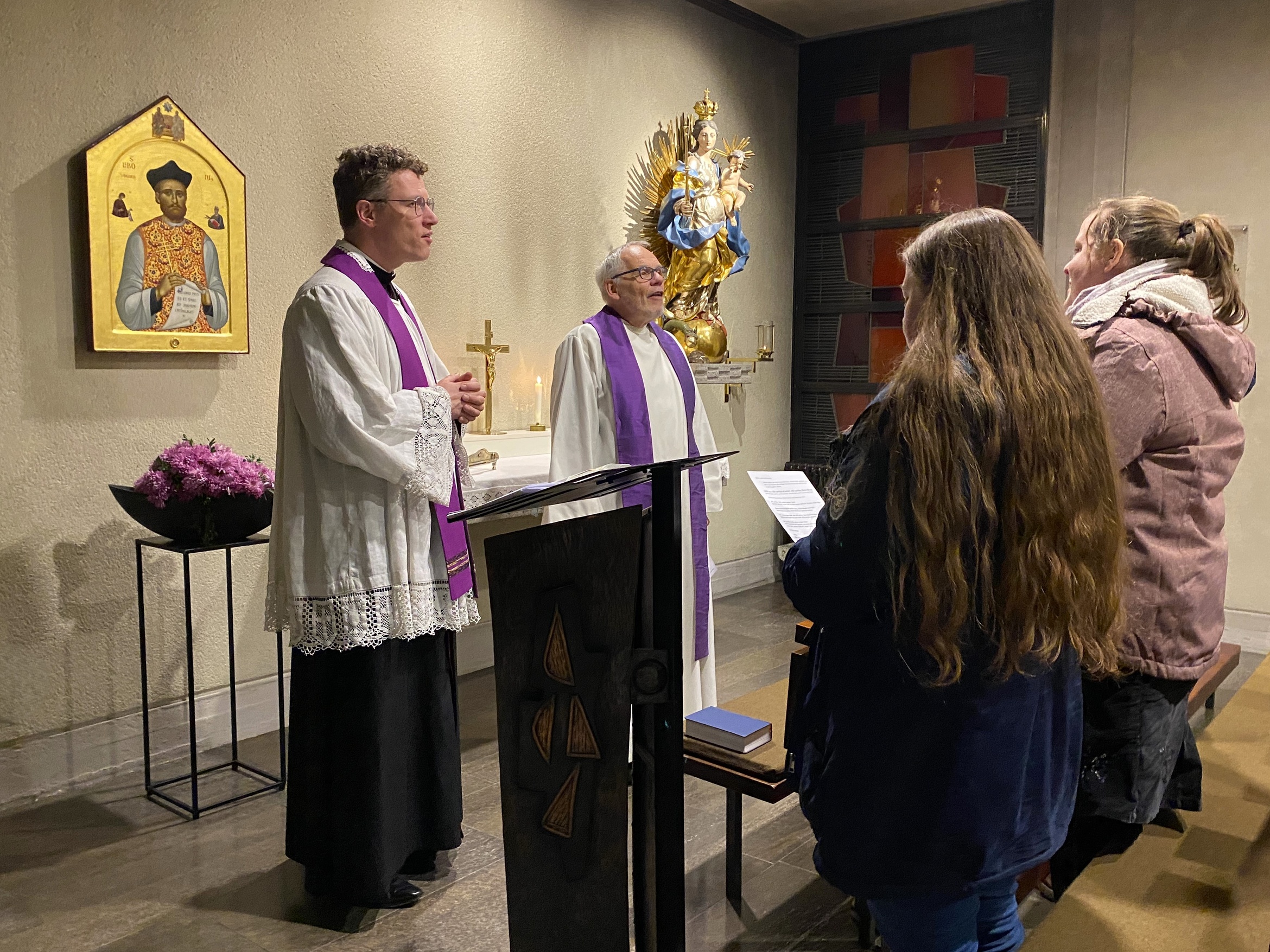 Aus diesem Anlass leiteten Pfarrer Winfried Gruhler von der Lebensgemeinschaft Schloss Craheim und Pfarrer Dr. Eugen Daigeler gemeinsam eine ökumenische Abendandacht. Lieder von Taizé erklangen in der Stadtlauringer Kirche und Kerzen für bedrängte Mitchristen in Gaza, in Somalia und in anderen Teilen der Welt wurden entzündet. Verschiedene Fürbitten für Opfer und für die Bekehrung der Täter wurden von Lektorinnen vorgetragen.