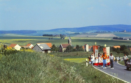 Der Kern des Dorfes ist geprägt von fränkischen Gehöften, teils in unverputztem Fachwerkbau und wird von der Kirche mit dem Julius-Echter-Turm überragt. Die Ortskirche ist dem Hl. Georg geweiht, sein Patrozinium wird jährlich am 23. April gefeiert.