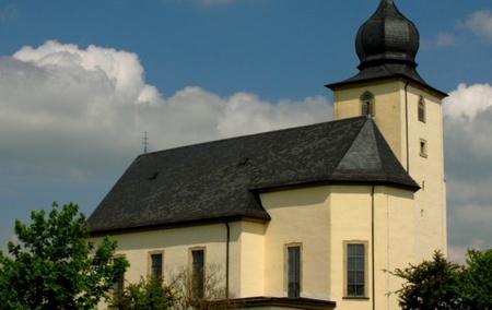 Älteste Bausubstanz der Kirche sind die Turmuntergeschosse aus dem späten 13. Jahrhundert. Unter Fürstbischof Julius Echter von Mespelbrunn wird um 1600 der Turm erhöht und erhält einen Spitzhelm. Der Bau des barocken Chores mit Kreuzgewölbe und Kappenschluss und des Langhauses zu drei Fensterachsen erfolgt 1732/33. Gleichzeitig erhält der Turm eine Zwiebelhaube. Innenrenovierung mit Umgestaltung des Chorraumes 1971. Altarkonsekration zu Ehren St. Laurentius durch Weihbischof Alfons Kempf am 18.12.1971. Außenrenovierung unter Leitung des Bad Brückenauer Architekten Stefan Richter 1993. Innenrenovierung 2002.